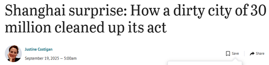 “低污染、交通顺畅、公共交通便捷,还有干净安静且适合步行的城市街道:我正身处上海的核心区域,却完全没有感受到这座超大城市本应有的喧嚣、污染与那种普遍的紧凑感,”科斯蒂根写道。