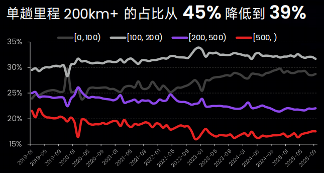 这些看法在数据层面也得到了一定的印证,2025年,我国全国货运指数五年来首次提升并稳定在5%左右,总量增加的同时,平均的运距变短了,短途运输的比例明显增加。“大家都过剩,比如山姆卖羊排,盒马也卖羊排,那就看谁的效率更高,送到你家时既没有冻上也还是冷的,这就要求极致的效率和体验共同发生。”